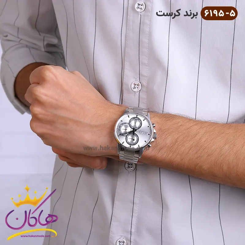 خرید ساعت کرست فلزی مردانه نقره ای کد 6195/5 CREST
