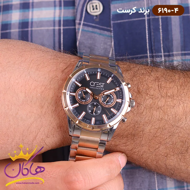 خرید ساعت کرست فلزی مردانه نقره رزگلد کد 6190/4 ( 6190/4 Watch crest )