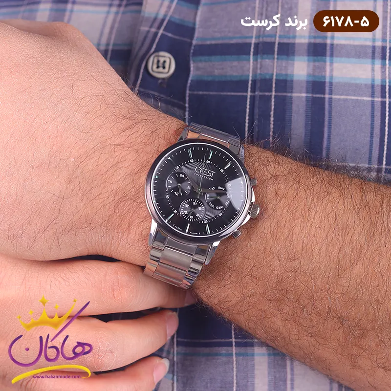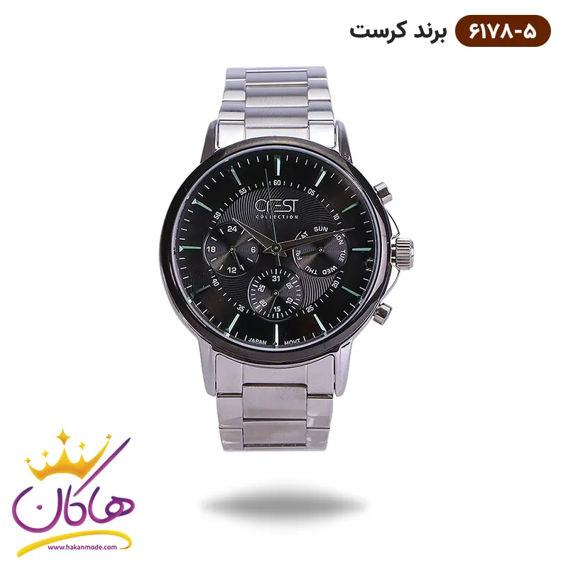 خرید ساعت کرست فلزی نقره ای صفحه مشکی مردانه ( 6178/5 Watch crest )