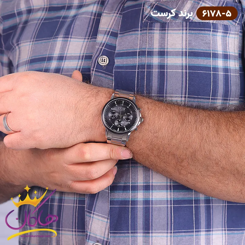 ساعت کرست فلزی نقره ای صفحه مشکی مردانه | 6178/5 CREST