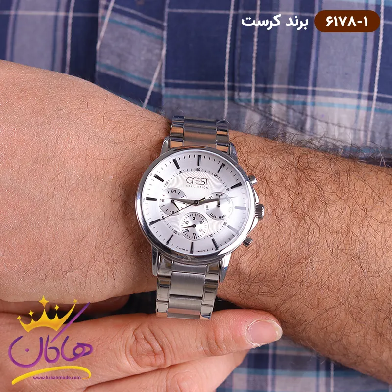 خرید ساعت کرست فلزی نقره ای مردانه ( 6178/1 Watch crest )