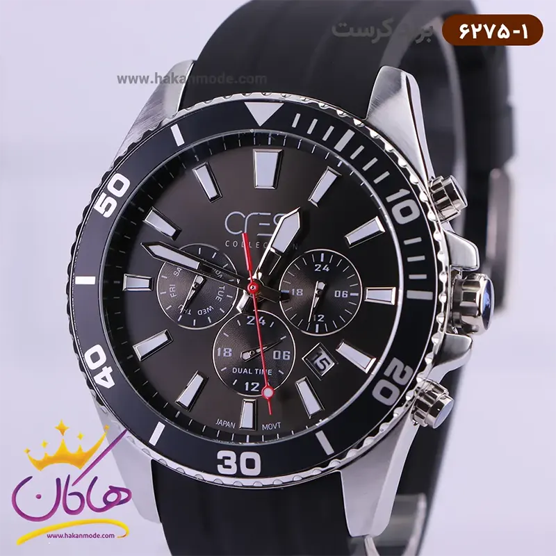 بهترین قیمت ساعت کرست مردانه بند رابر مشکی