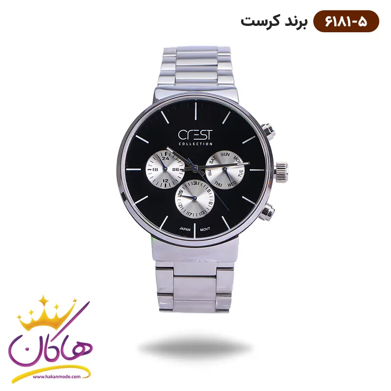ساعت کرست مردانه صفحه مشکی فلزی | CREST 6181/5