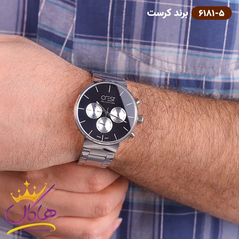 ساعت کرست فلزی نقره ای صفحه مشکی مردانه | 6178/5 CREST قیمت اصلی: 4.715.000 تومان بود.قیمت فعلی: 4.100.000 تومان.