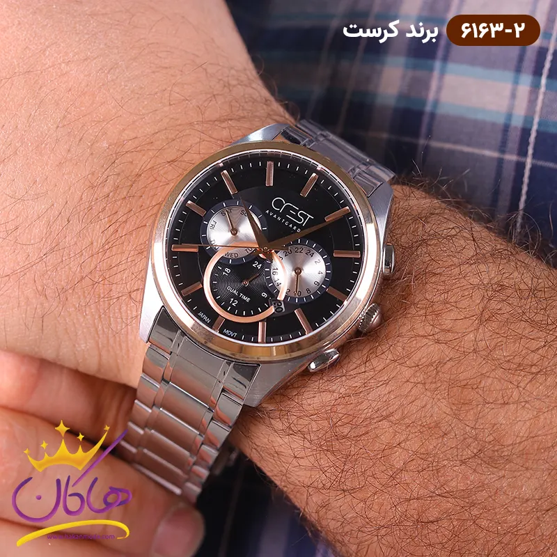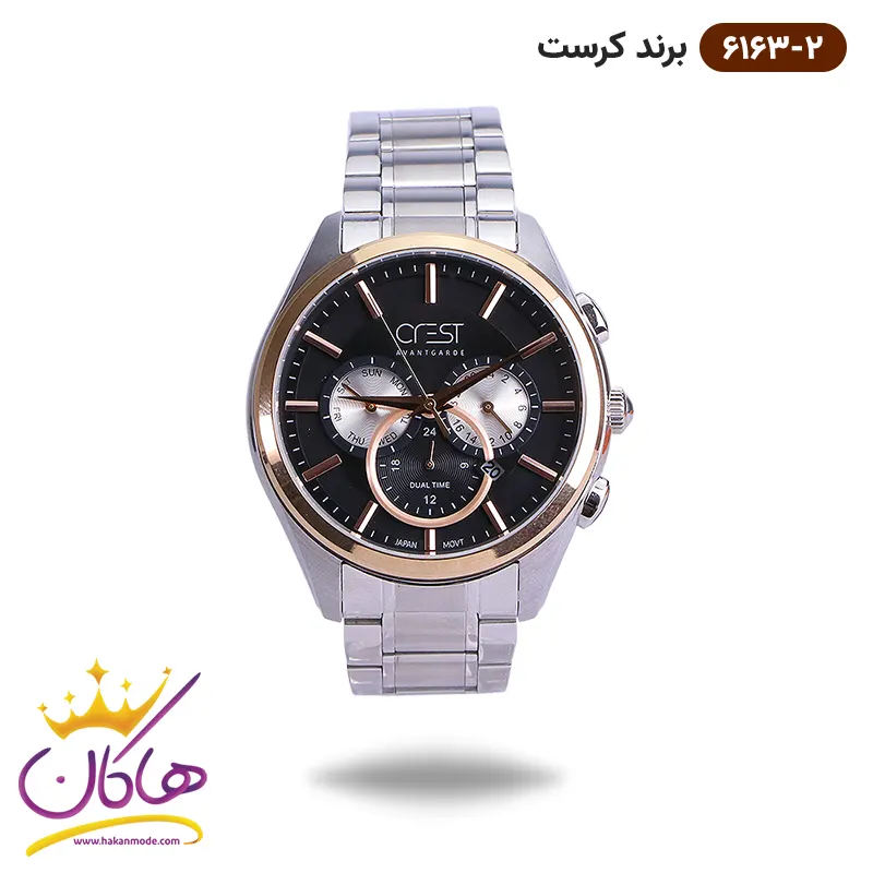 خرید ساعت کرست مردانه فلزی صفحه مشکی کد 6163/2 ( 6163/2 Watch crest )