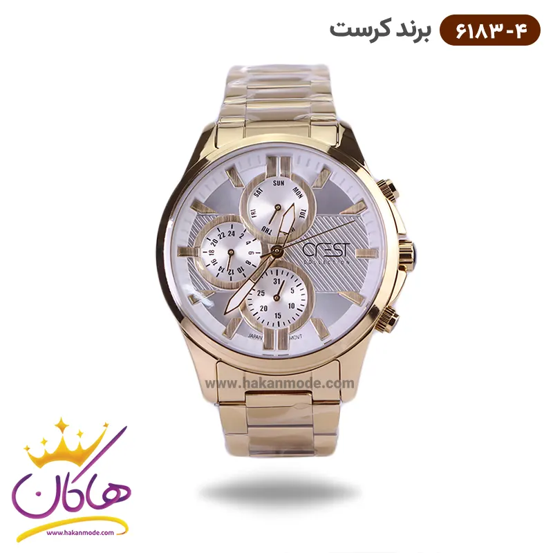 ساعت کرست مردانه فلزی طلایی فول دیت مدل crest 6183/4