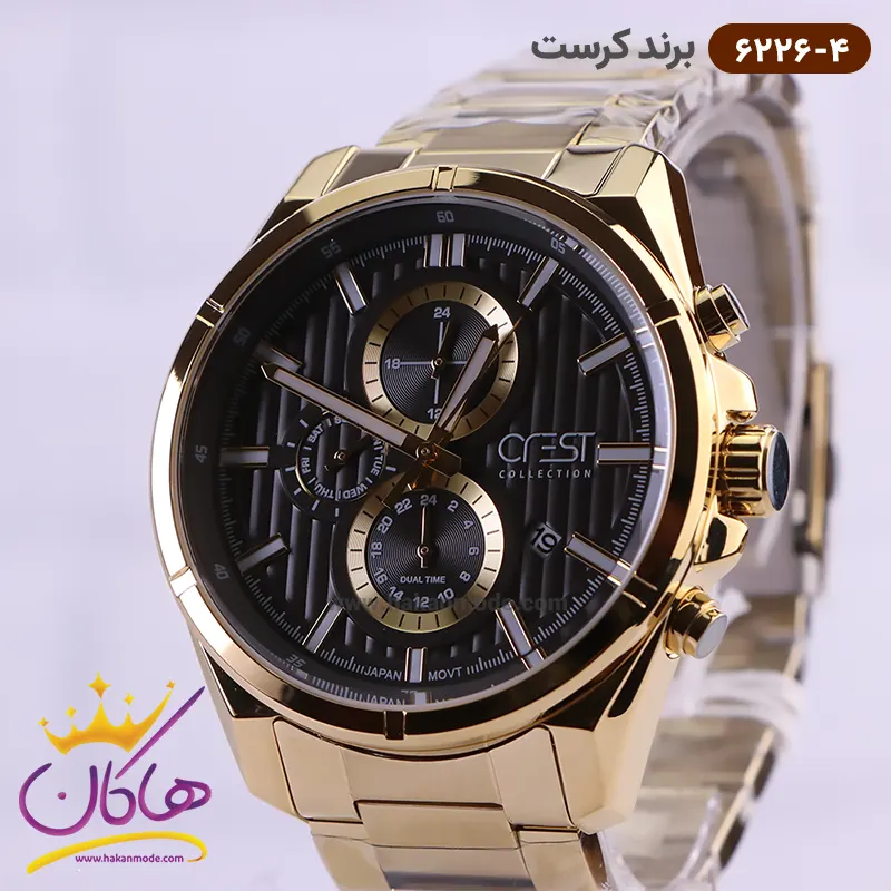 ویژگی ساعت کرست مردانه فلزی طلایی سه موتوره مدل 6226/4