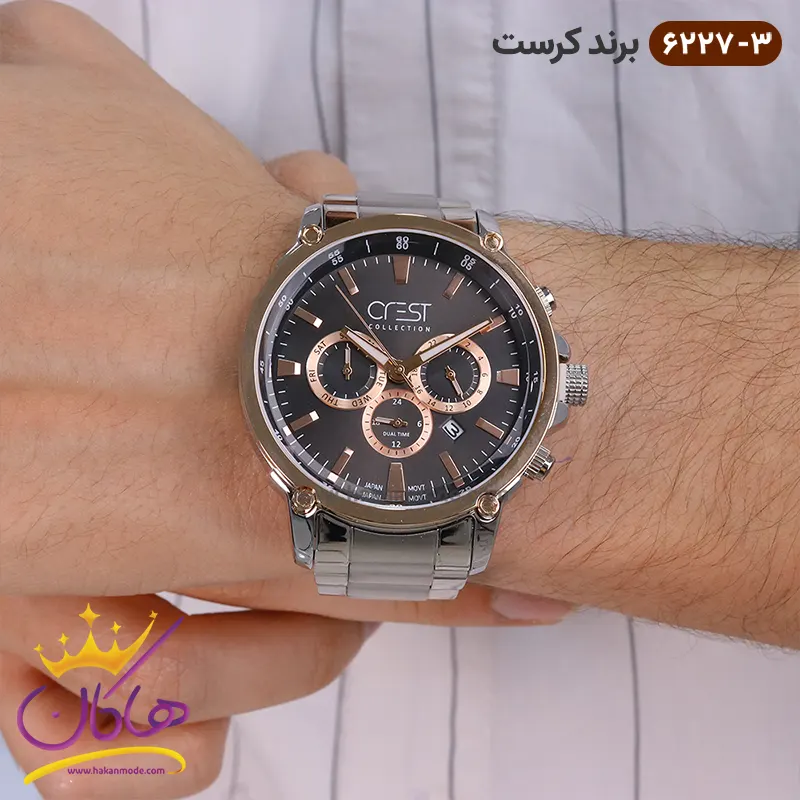 ساعت کرست مردانه فلزی نقره ای دو زمانه مدل crest 6227/3