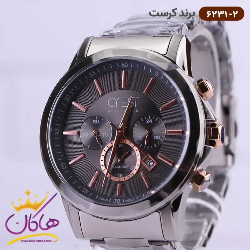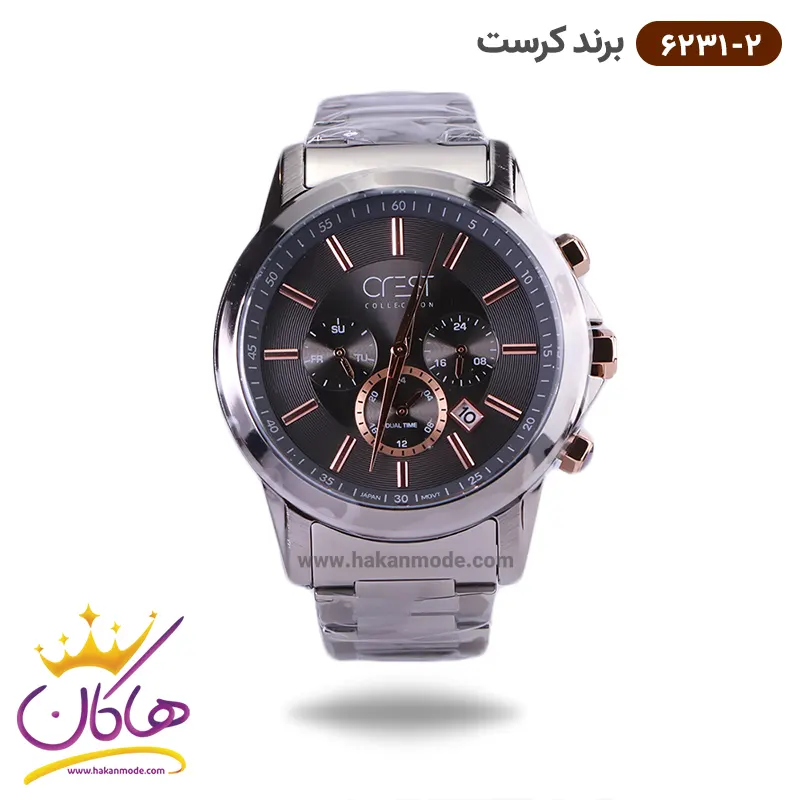 ویژگی ساعت کرست مردانه فلزی نقره ای دو زمانه مدل 6231/2