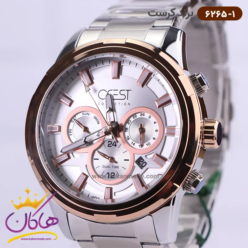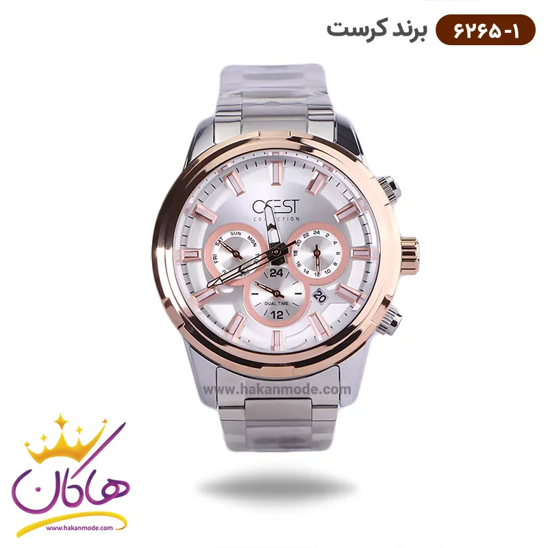 ساعت کرست مردانه فلزی نقره ای دو زمانه مدل crest 6265/1