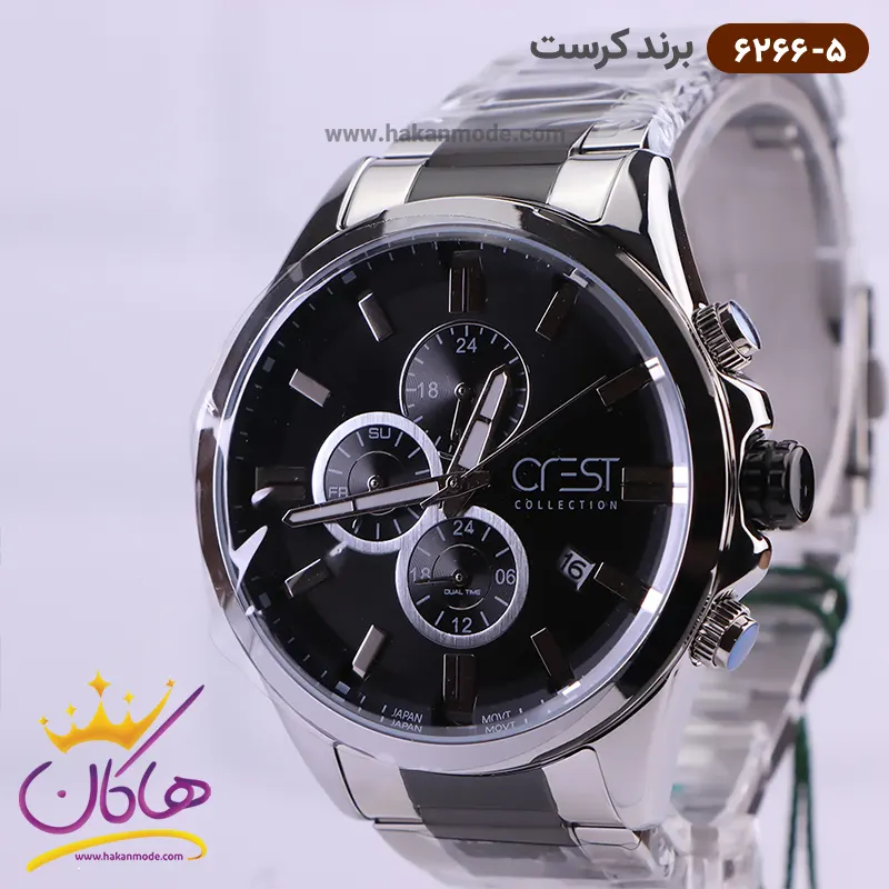 ویژگی ساعت کرست مردانه فلزی صفحه مشکی دو زمانه مدل 6266/5
