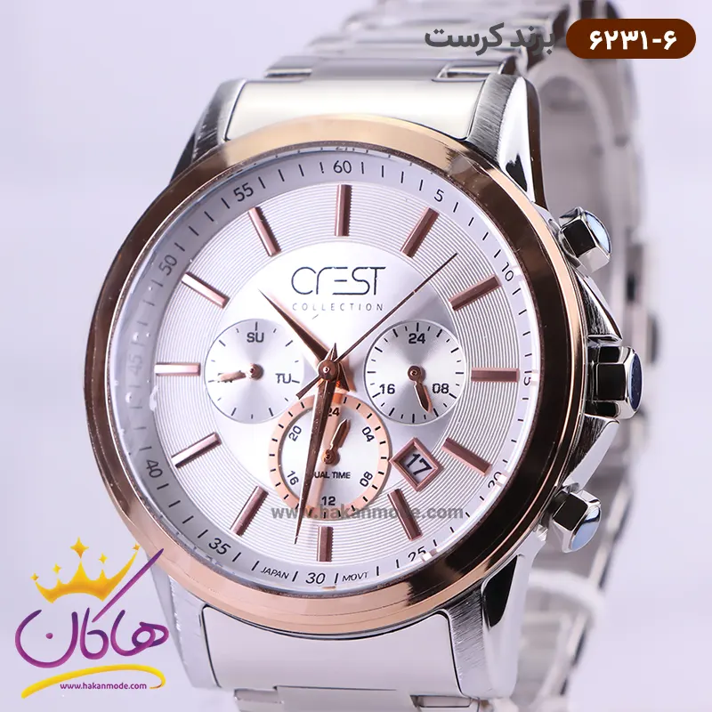 ویژگی ساعت کرست مردانه فلزی نقره ای دو زمانه کد 6231/6