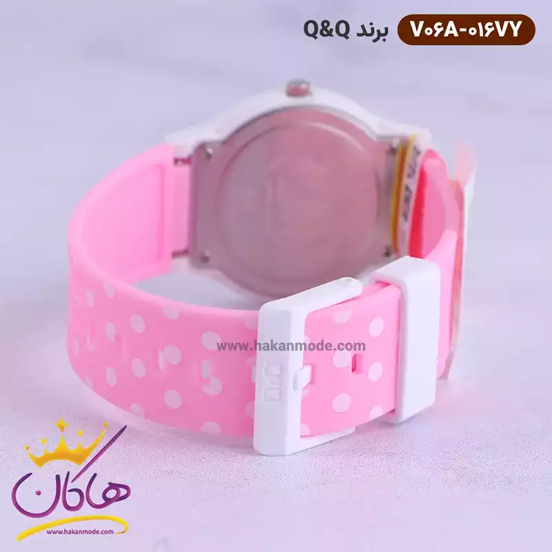بهترین قیمت ساعت دخترانه کیو اند کیو بند صورتی خال خالیV06A/016VY