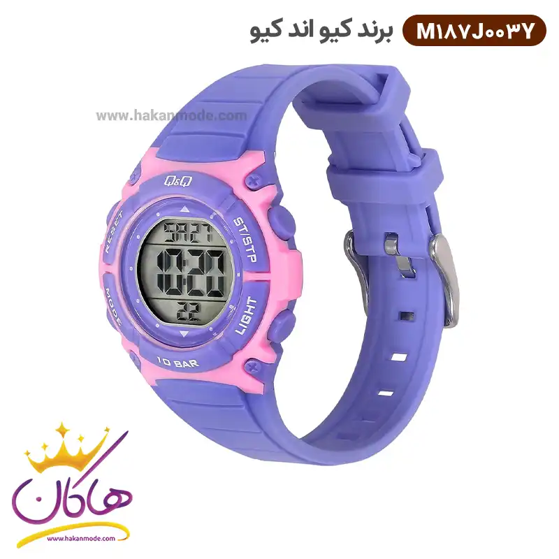 قفل ساعت کیو اند کیو دخترانه رابر بنفش دیجیتالی M187J003Y