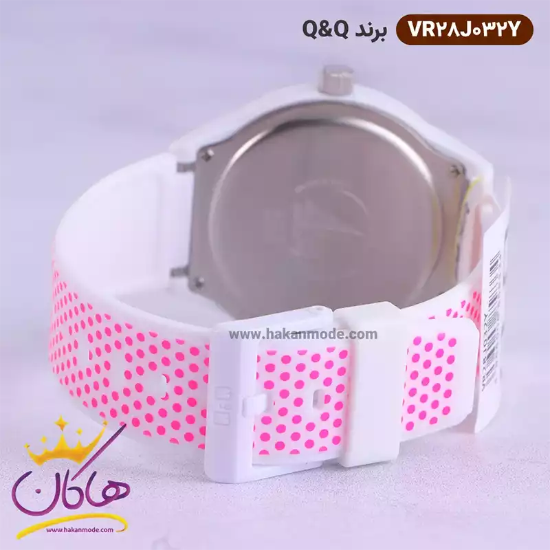 قفل ساعت دخترانه کیو اند کیو سفید بند خال خالی VR28J032Y