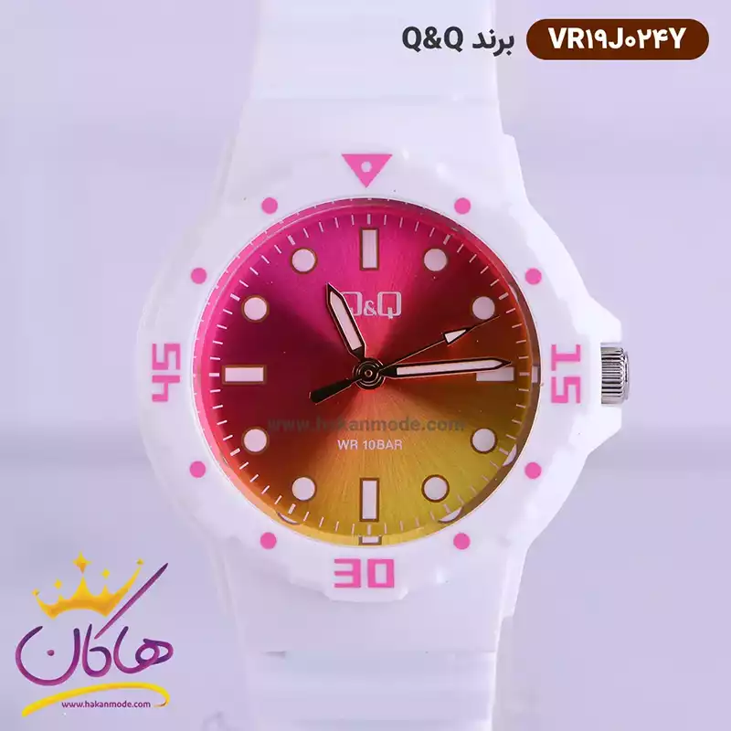 صفحه ساعت دخترانه کیو اند کیو سفید صفحه هفت رنگ VR19J024Y