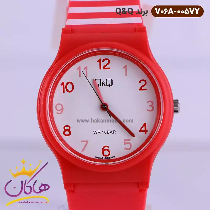 ساعت کیو اند کیو قرمز V06A/005VY یک ساعت امروزی و مدرن دخترانه/پسرانه است. رنگ ساعت ثابت و ضدحساسیت است. موتور این ساعت ساخت ژاپن و از نوع کوارتز است. ساعت مچی دخترانه/پسرانه کیو اند کیو یکسال گارانتی موتور و تا پنج سال گارانتی تعویض باتری دارد. جنس این ساعت از پلاستیک سیلیکونی است و بسیار منعطف و بادوام است. این ساعت ضد آب است و به همین دلیل بسیار مورد علاقه ورزشکاران است. ساعت کیو کیو از نظر قیمت در حد متوسط و از نظر کیفیت مطلوب و مورد تایید است.