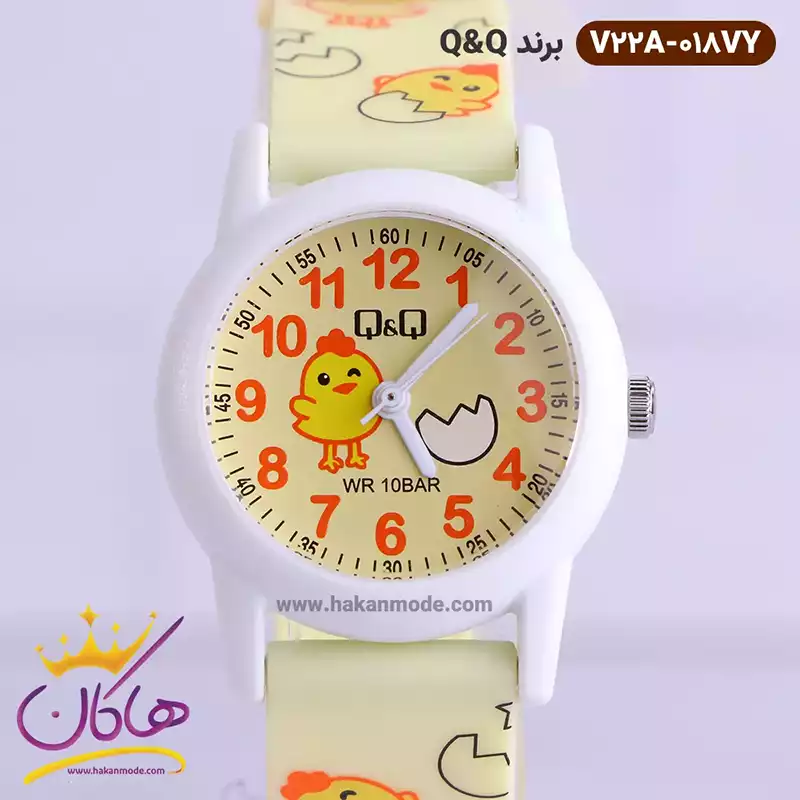 بهترین قیمت ساعت دخترانه کیو اند کیو لیمویی طرح جوجه V22A-018VY