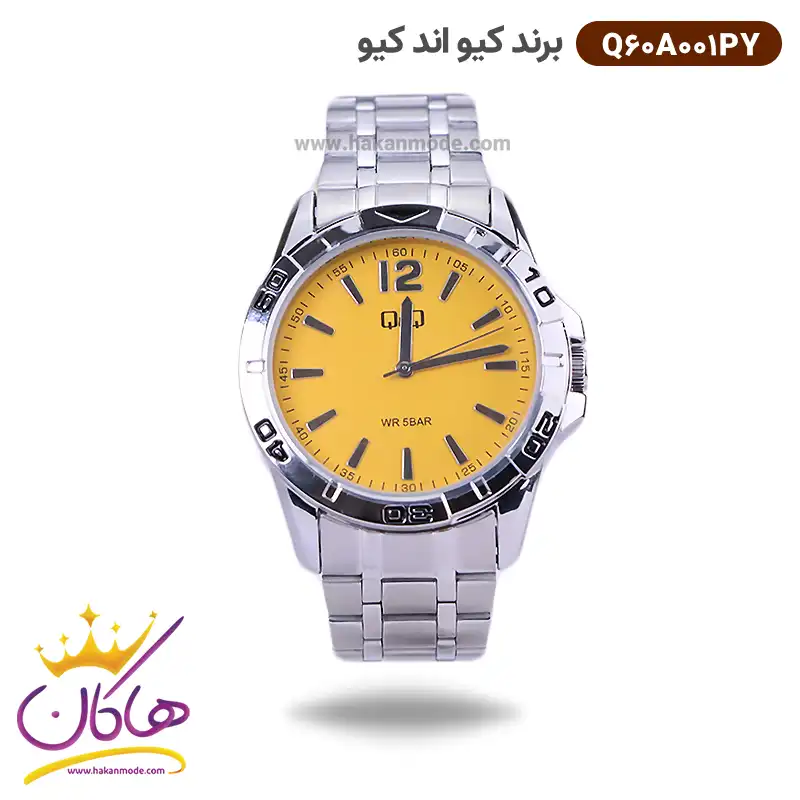 ساعت کیو اند کیو مردانه فلزی صفحه زرد Q60A-001PY