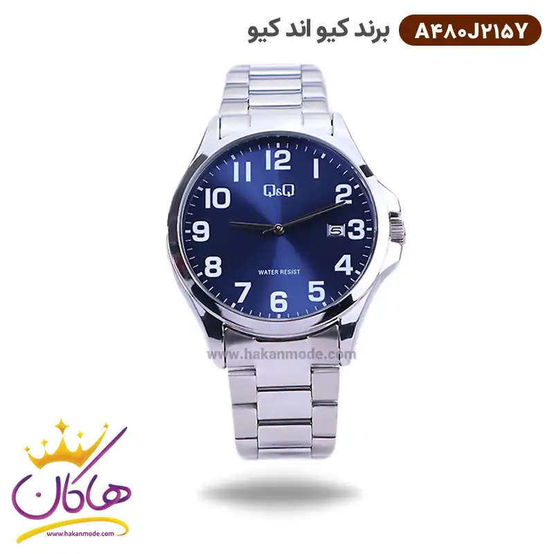 ویژگی ساعت کیو اند کیو مردانه نقره ای صفحه آبی A480J215Y
