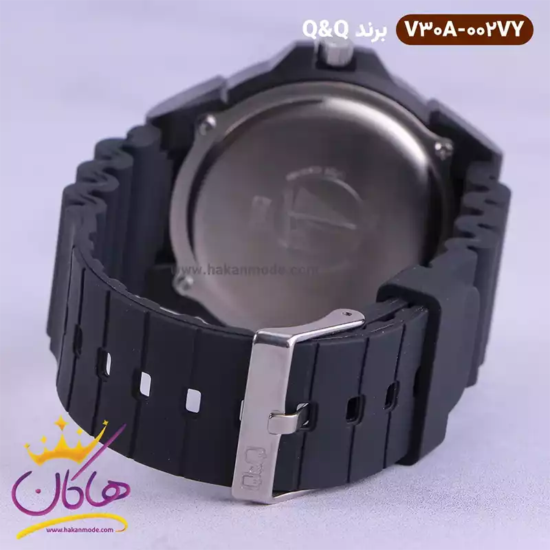 ساعت کیو کیو مشکی صفحه سورمه ای V30A/002VY یک ساعت امروزی و مدرن پسرانه است. رنگ ساعت ثابت و ضدحساسیت است. موتور این ساعت ساخت ژاپن و از نوع کوارتز است. ساعت مچی پسرانه کیو اند کیو یکسال گارانتی موتور و تا پنج سال گارانتی تعویض باتری دارد. جنس این ساعت از پلاستیک سیلیکونی است و بسیار منعطف و بادوام است. این ساعت ضد آب است و به همین دلیل بسیار مورد علاقه ورزشکاران است. ساعت کیو کیو از نظر قیمت در حد متوسط و از نظر کیفیت مطلوب و مورد تایید است.