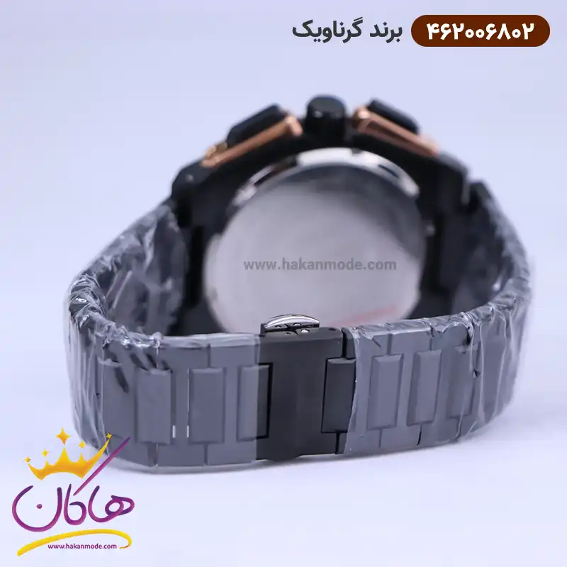 بهترین قیمت ساعت گرناویک مردانه استیل مشکی رزگلد