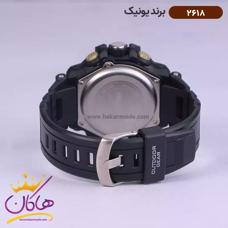 ساعت یونیک مردانه دو زمانه دیجیتالی مشکی 2618 ظاهری مدرن و جذاب دارد. علاوه بر ویژگی های ظاهری باید گفت این ساعت تک موتوره است اما زمان را به دو صورت نشان می‌دهد. هم نمایش آنالوگ یعنی عقربه‌ای دارد و هم به صورت دیجیتال نشان می‌دهد که میتوانید ساعت دیجیتال یا عقربه‌ای خود را روی یک منطقه‌ی زمانی دیگر تنظیم کنید و از ساعت کشور دیگر مطلع شوید. اگر به داخل ساعت نگاه کنید می‌بینید که سه اندکس‌ اصلی، عددی بزرگ به خوبی نمایان هستند. بند ساعت از جنس رابر و از نوع مرغوب است که باعث تعرق و خارش نمی شود. قفل ساعت از نوع سگکی(کمربندی) است و ساعت به راحتی از دست نمی‌افتد. دو زمانه بودن این ساعت یکی از دلایل شیکی آن است. اگر به درون صفحه نگاه کنید، نام برند یونیک کنار ساعت ۹ دیده می‌شود. در کنار صفحه دو پیچ کوک و چهار دکمه برای تنظیم زمان و ساعت وجود دارد.