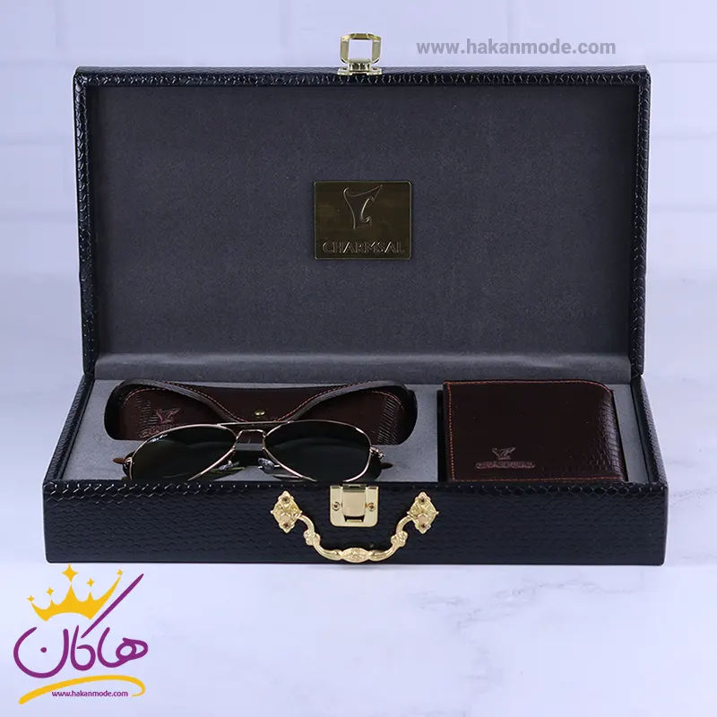 ست کیف چرم و عینک مردانه چرمسال قهوه ای 181/2 درون جعبه