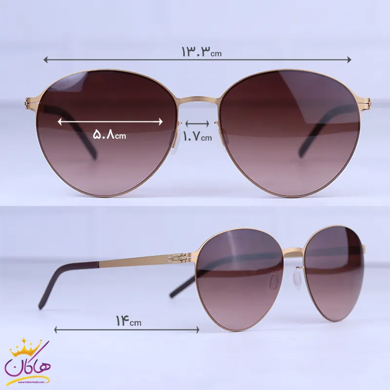 در خرید عینک دودی به فرم صورت خود دقت کنید. فریم این عینک که مهمترین قسمت آن است از نوع تمام فریم و به شکل بیضی است. این فریم طلایی جذاب به خوبی روی چشم قرار می گیرد. ابعاد عینک آفتابی زنانه آیس برلین با پهنای حدود 13.3 سانتی‌متر است. فریم بیضی برای افرادی که صورت‌های مربع، قلبی و لوزی دارند مناسب است. پل عینک، از جنس بدنه‌ی عینک و بینی گیر لاستیکی آن، بسیار نرم و منعطف است. رنگ عدسی قهوه‌ای و عرض آن حدود 5.8 سانت است و چشم را کامل می‌پوشاند و در وسعت دید اشکالی به وجود نمی‌آورد. عرض پل 1.7 سانت است و به خوبی روی بینی می‌نشیند. دسته عینک به رنگ طلایی و ظریف و شیک است. طول دسته حدود 14 سانتیمتر است که با قوس ملایم به پشت گوش میرسد. سبکی این عینک کمک می‌کند تا ساعت‌های طولانی عینک را به چشم بزنید و ابدا در قسمت گوش‌ها یا بینی احساس سنگینی و خستگی نکنید.