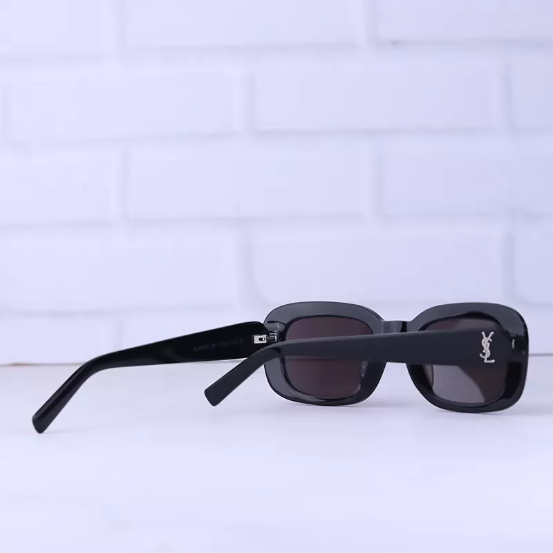فریم این عینک که مهمترین قسمت آن است از نوع تمام فریم به شکل مستطیل است. این فریم مشکی به خوبی روی چشم قرار میگیرد. عینک آفتابی ایوسن لورن زنانه با پهنای حدود 12.7 سانتیمتر تقریبا برای تمام فرمهای صورت مناسب است اما بیشتر افرادی که صورتهای بیضی، قلبی و گرد دارند، از طرفداران این مدل عینک هستند. پل عینک، کائوچو و بینی گیر آن قسمتی از فریم است. عرض پل 2.1 سانت است و به خوبی روی بینی می نشیند. رنگ عدسی مشکی و عرض آن حدود 5.3 سانت است و چشم را کامل می پوشاند و در وسعت دید اشکالی به وجود نمیآورد. دسته عینک به رنگ مشکی و نسبتا پهن است که لوگوی برند ایو سن لورن به رنگ نقرهای روی آن دیده میشود. طول دسته حدود 14.5 سانتیمتر است و با یک قوس ملایم تا پشت گوش میرود. درون دسته یک استیل وجود دارد که به استحکام فریم کمک میکند به این مدل دسته و فریم به اصطلاح استیت یا استات گفته میشود. سبکی این عینک کمک میکند تا ساعتهای طولانی یا هنگام رانندگی، عینک را به چشم بزنید و ابدا در قسمت گوشها یا بینی احساس سنگینی و خستگی نکنید. استفاده از این عینک محدودیت سنی و جنسی ندارد.