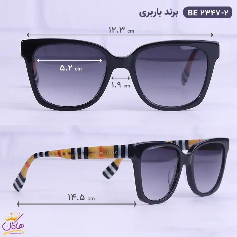 ابعاد عینک آفتابی باربری زنانه مشکی BE2347/2