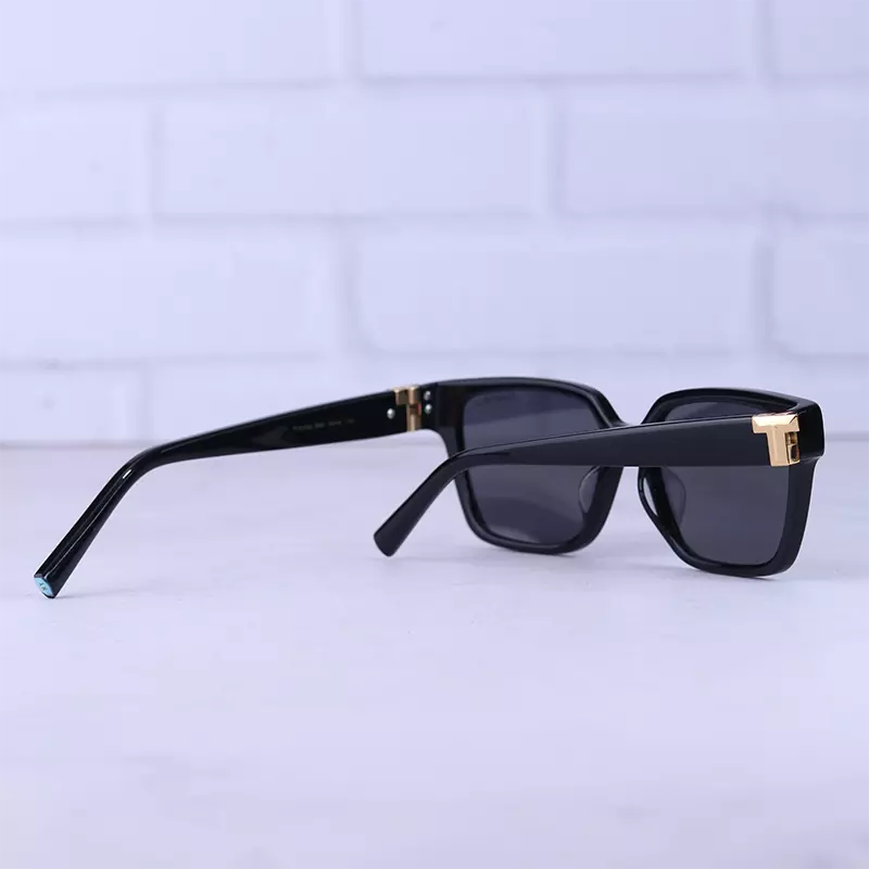 فریم این عینک که مهمترین قسمت آن است از نوع تمام فریم و به شکل مستطیل است. این فریم مشکی جذاب به خوبی روی چشم قرار میگیرد. پهنای عینک آفتابی تیفانی زنانه حدود 12.6 سانتیمتر است. افرادی که صورتهای گرد، قلبی و بیضی دارند، از طرفداران این مدل عینک هستند. پل عینک، کائوچو و بینی گیر آن از جنس بدنه عینک است. رنگ عدسی مشکی و عرض آن حدود 5.5 سانت است و چشم را کامل میپوشاند و در وسعت دید اشکالی به وجود نمیآورد. عرض پل 1.6 سانت است و به خوبی روی بینی مینشیند. دسته عینک به رنگ مشکی و نماد برند تیفانی روی آن به رنگ طلایی دیده میشود که نمای کناری عینک را شیک و بی نظیر کرده است. طول دسته حدود 14 سانتیمتر است و با یک قوس ملایم تا پشت گوش میرود. سبکی این عینک کمک میکند تا ساعتهای طولانی یا هنگام رانندگی، عینک را به چشم بزنید و ابدا در قسمت گوشها یا بینی احساس سنگینی و خستگی نکنید.