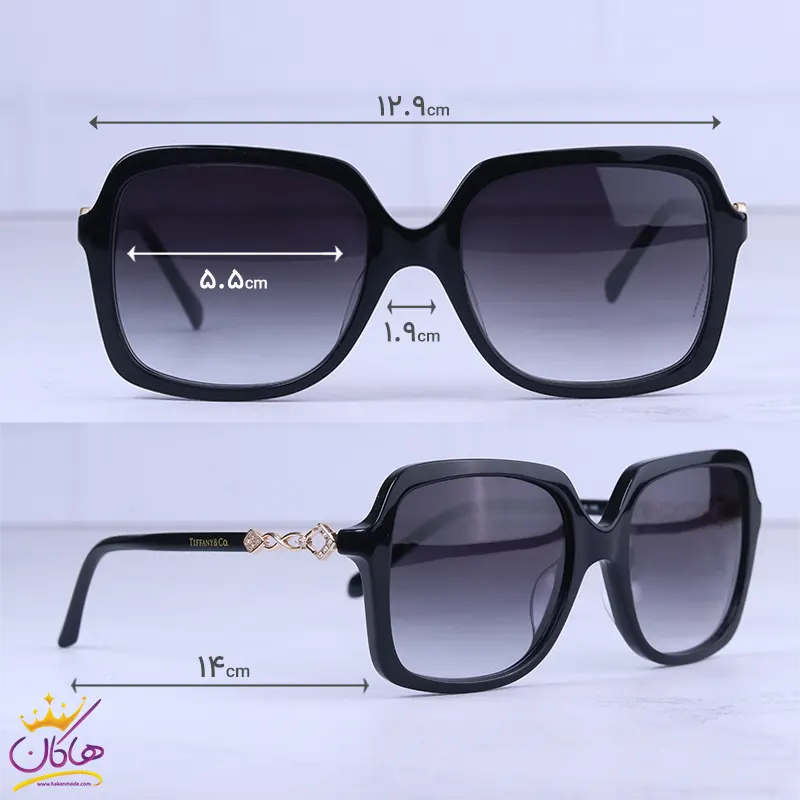 ابعاد عینک آفتابی تیفانی زنانه فریم مشکی استیت TF4358/1