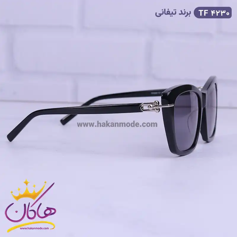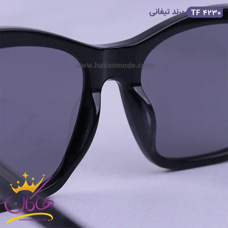 فریم این عینک که مهمترین قسمت آن است از نوع تمام فریم و به شکل مربع و پروانه ای است. این فریم مشکی جذاب به خوبی روی چشم قرار می گیرد. پهنای عینک آفتابی تیفانی زنانه مدل tf4230 حدود 12.8سانتی‌متر است. افرادی که صورت‌های مثلثی، گرد و بیضی دارند، از طرفداران این مدل عینک هستند. پل عینک، کائوچو و بینی گیر آن از جنس بدنه عینک است. رنگ عدسی مشکی و عرض آن حدود 5.5 سانت است و چشم را کامل می‌پوشاند و در وسعت دید اشکالی به وجود نمی‌آورد. عرض پل 1.8 سانت است و به خوبی روی بینی می‌نشیند. دسته عینک به رنگ مشکی و ساده است. در قسمت اتصال دسته به فریم یک قسمت استیل براق وجود دارد که شبیه سه گوی در هم فرو رفته است. طول دسته حدود 14 سانتی‌متر است و با یک قوس ملایم تا پشت گوش می‌رود. سبکی این عینک کمک می‌کند تا ساعت‌های طولانی یا هنگام رانندگی، عینک را به چشم بزنید و ابدا در قسمت گوش‌ها یا بینی احساس سنگینی و خستگی نکنید.