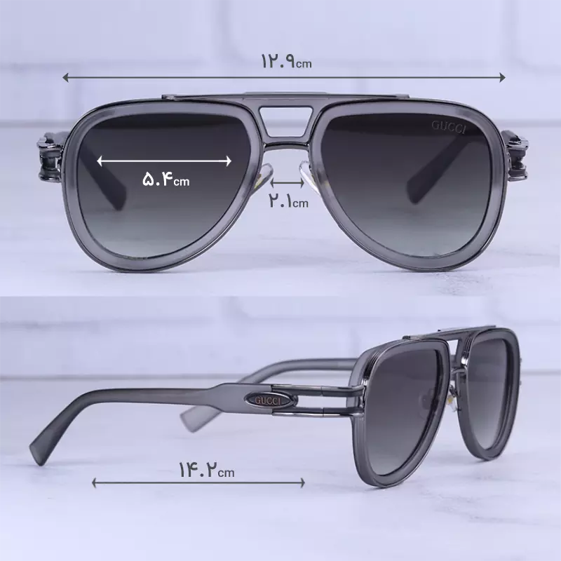 ابعاد عینک آفتابی خلبانی گوچی مردانه فریم طوسی GG 6807/2