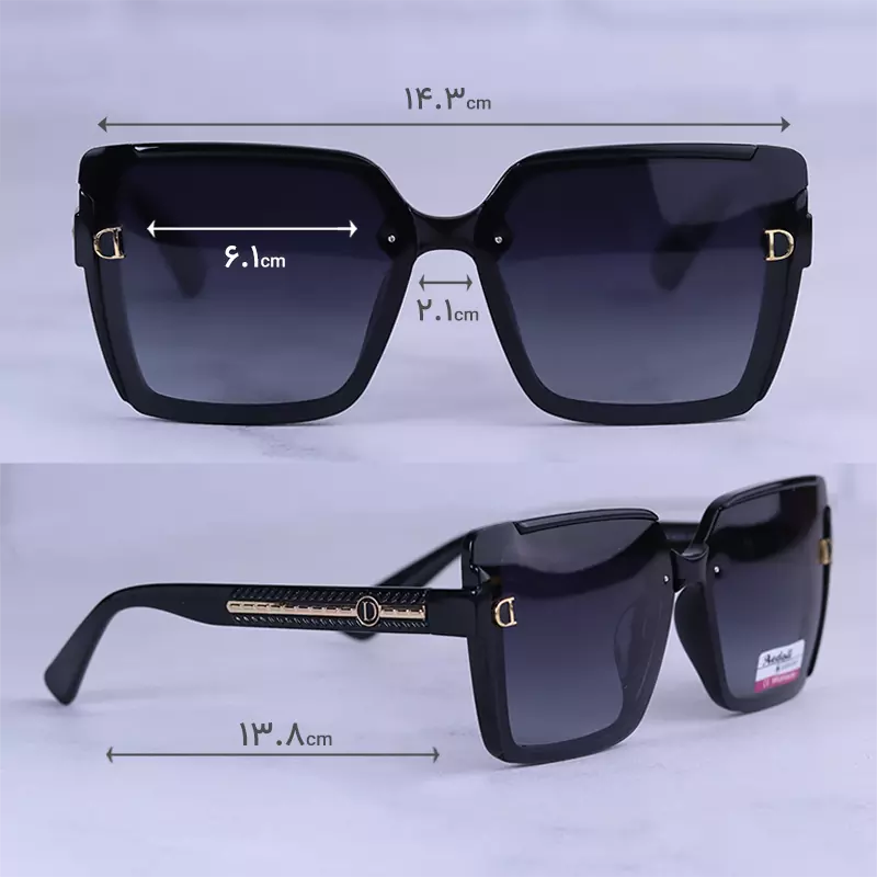 ابعاد عینک آفتابی دیور زنانه فریم مربع مشکی پلاریزه P 2308/3