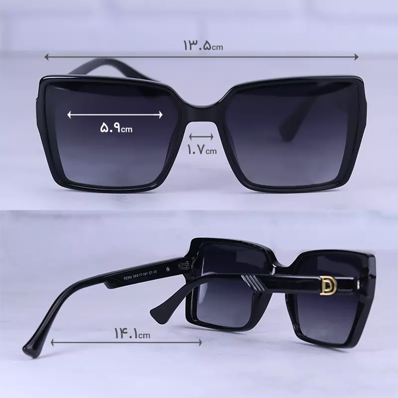 ابعاد عینک آفتابی دیور زنانه فریم مربع مشکی پلاریزه p 2304/2