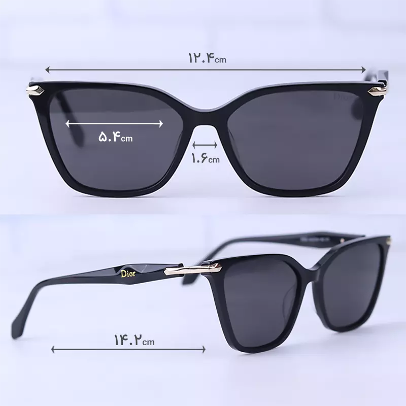 ابعاد عینک آفتابی دیور زنانه فریم گربه ای مشکی 9783/1