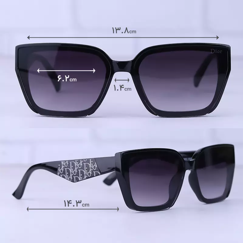 ابعاد عینک آفتابی دیور زنانه مشکی فریم مستطیل Z9100C/1