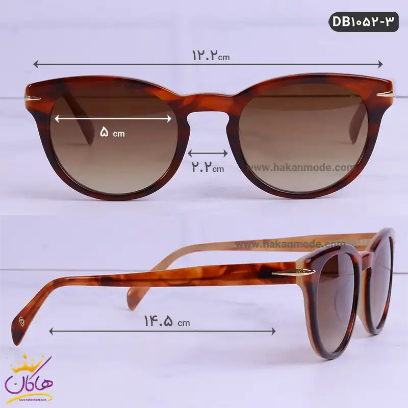 ابعاد عینک آفتابی دیوید بکهام اورجینال قهوه ای مدل 1052 DB