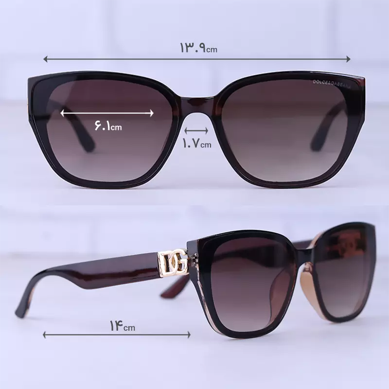 ابعاد عینک آفتابی دی اند جی زنانه فریم پروانه ای قهوه ای 9711/1