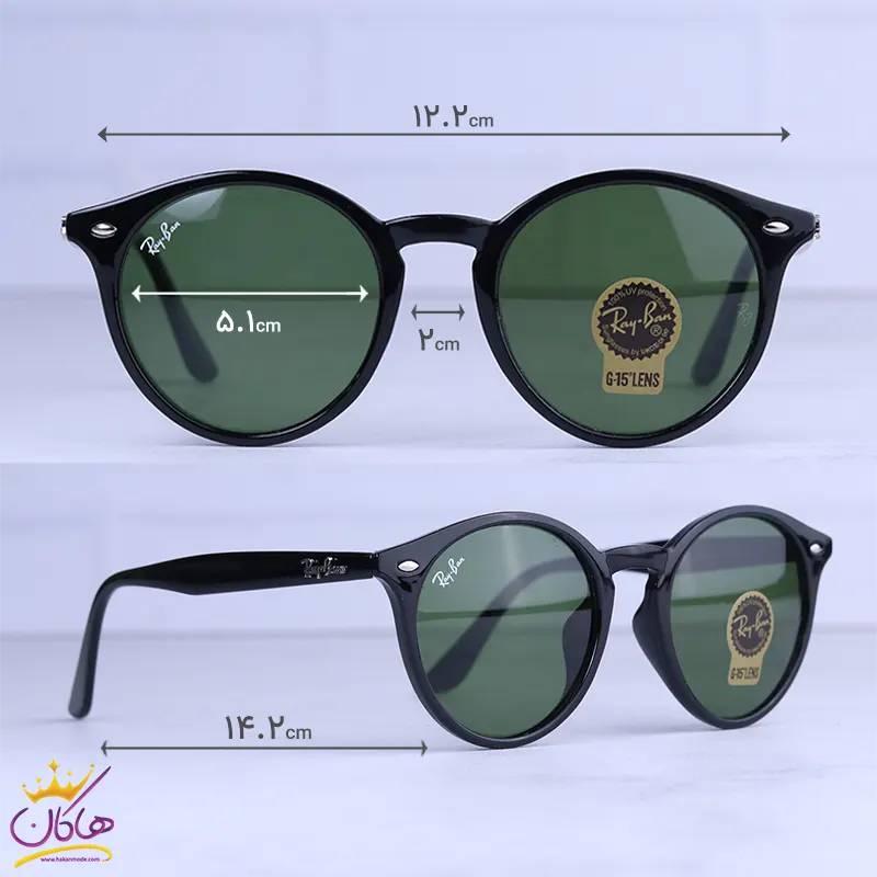 ابعاد عینک آفتابی ریبن فریم گرد شیشه سبز RB 2180/1