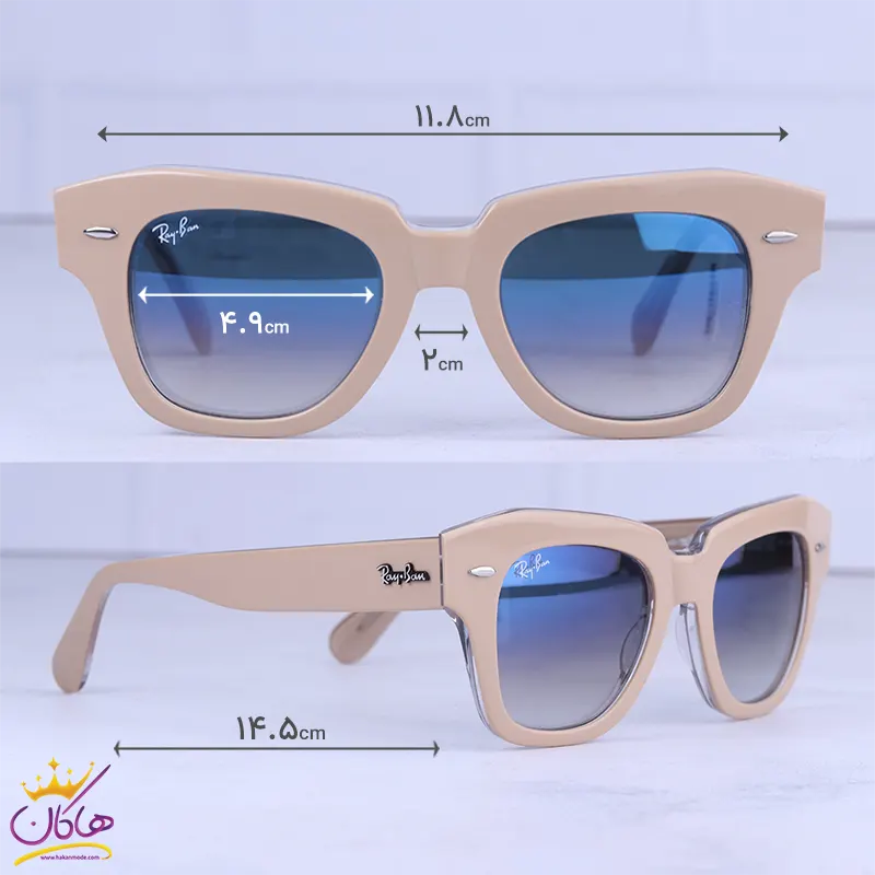 ابعاد عینک آفتابی ری بن زنانه فریم ویفرر کرمی RB 2186/1