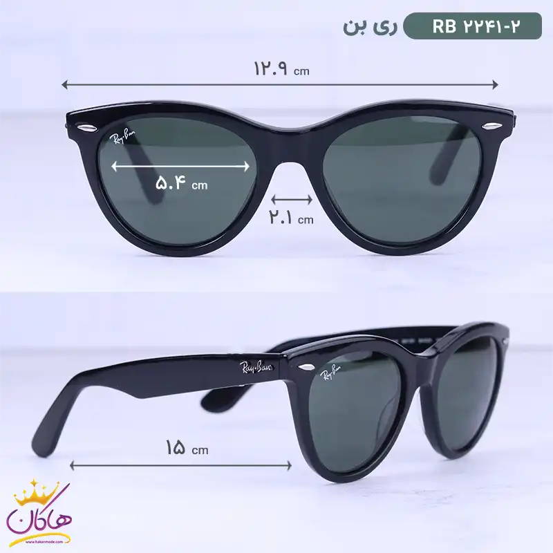 ابعاد عینک آفتابی ری بن زنانه مدل گربه ای RB2241/2
