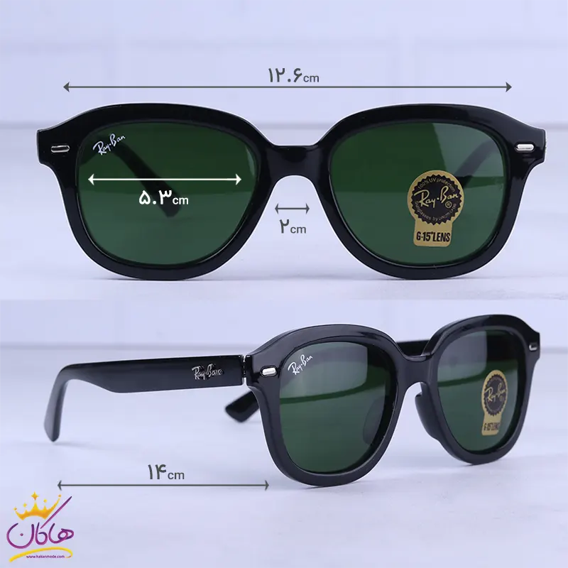 ابعاد عینک آفتابی ری بن زنانه مشکی شیشه سبز RB 4398/1