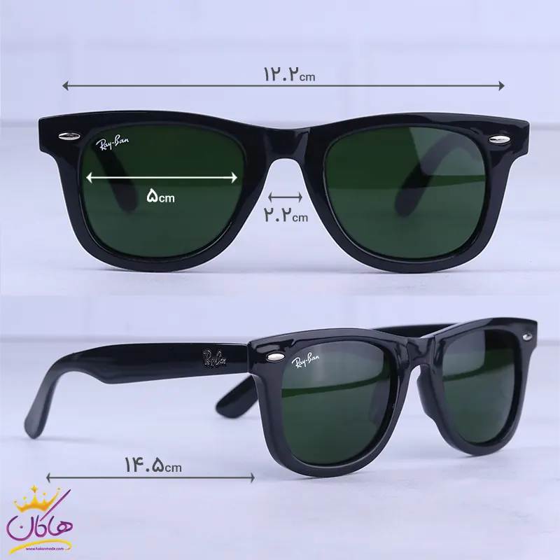 ابعاد عینک آفتابی ری بن زنانه مشکی شیشه سبز RB R2140/1S