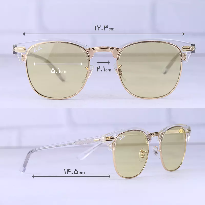 ابعاد عینک آفتابی ری بن زنانه کلاب مستر شیشه زرد RB 3016/4