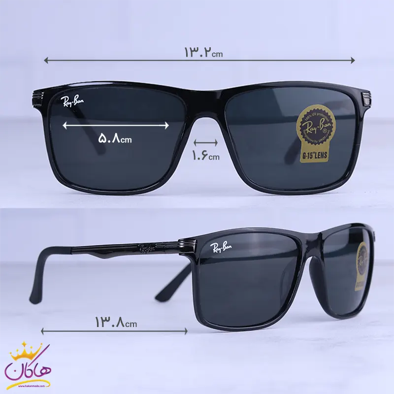 ابعاد عینک آفتابی ری بن فریم مستطیل مشکی RB 4341/1