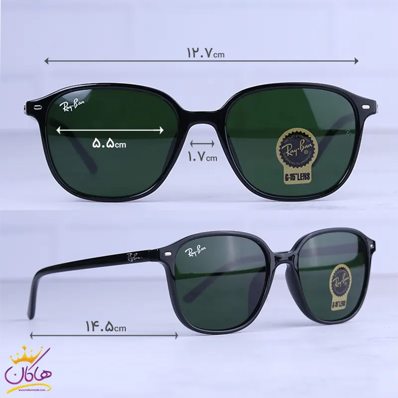 ابعاد عینک آفتابی ری بن فریم مشکی شیشه سبز RB 2193/2