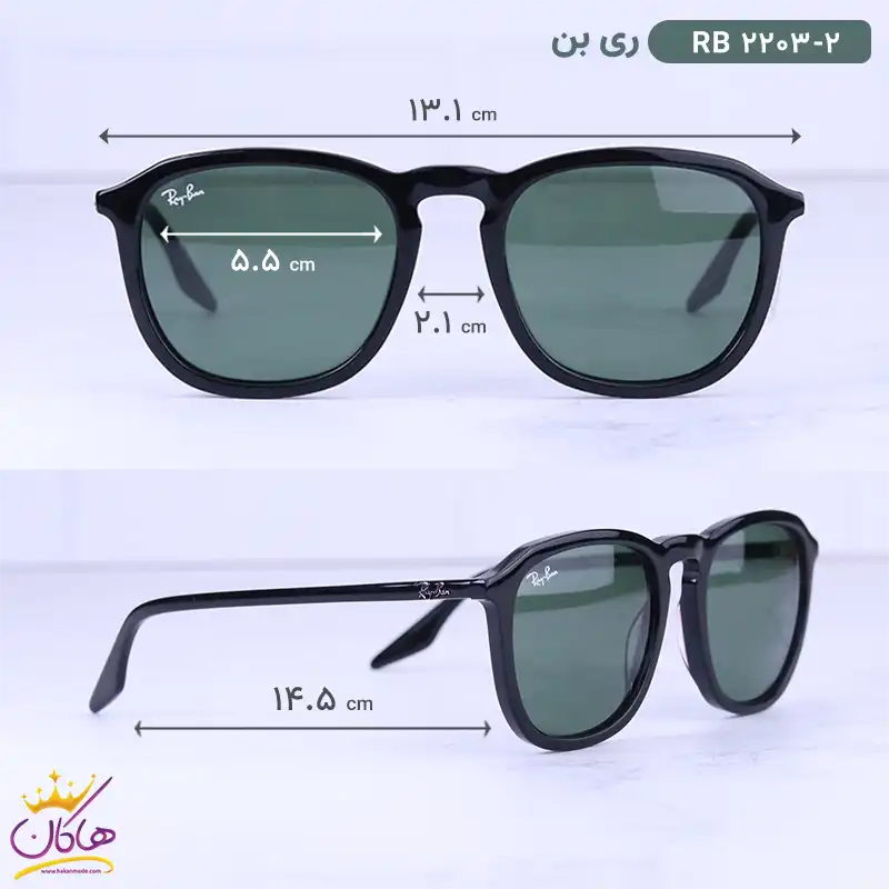 ابعاد عینک آفتابی ری بن فریم مشکی RB2203/2
